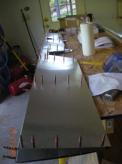 Completed center channel and clecoed ribs inside elevator skin.