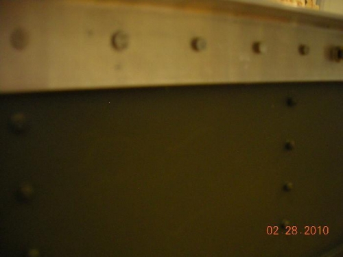 Received the upgrade package the 1st week in FEB. I had already dirlled out most of the solid rivets while waiting for the upgrade. At the time of this entry, I have trimmed the rear ribs and installed the upgrade extrusion with solid rivets. In addition to the plans, I replaced 2 solid rivets with 1/4 inch AN Bolts on the extrusion. I purchased aircraft quailtiy parts from Spruce Aircraft. After bucking the rivets, I mearsured each one to ensure that the "shop end" was 1 & 1/2 times the diameter of the rivet shaft.