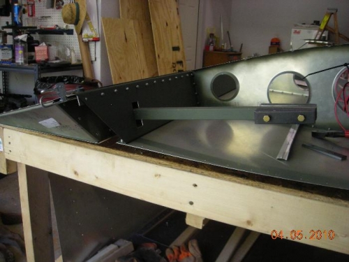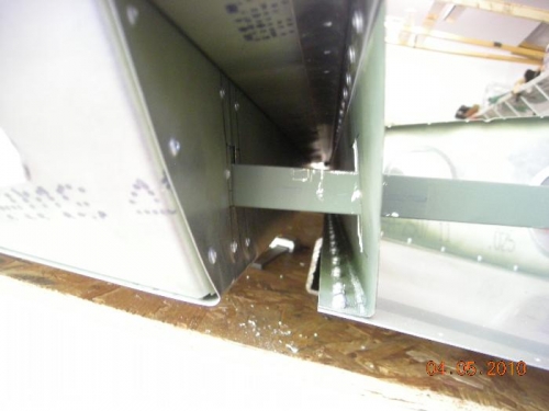 Drilled out rivets and initial fit of gussets. Drilled first balance rib. Cut rear channel to accept balance arm. Installed protection plates on top & bottom skin. Also added 2 L angles on the front side of the rear channel to give support to the weight of the balance arm.