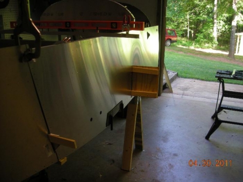 Cut out notch in skin for landing gear bracket.