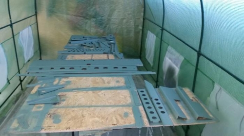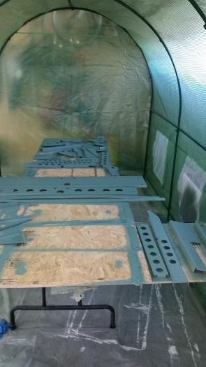 I primed several fuselage parts that had been match drilled per the plans. I tried a new method, using an HVLP gun instead of the SEM rattle cans. I had some bad luck with lifting primer, and experimented several times on scrap with results that I wasn't happy with. I will be going back to SEM rattle can for the remainder of the build. I have always had great results with it.