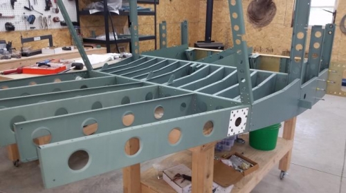 Installed Step mount bracket. Primed inside bare metal and shank sealed all rivets.