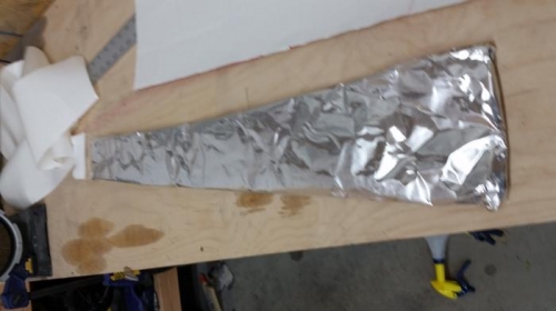 I'm not sure how significant this will be, but I thought before I riveted the floorboards, I thought I would make some ceramic/aluminum foil insulation. I glued them down with Firewall sealant. I chose these materials for insulating in order to minimize cockpit fumes in the case of a fire.