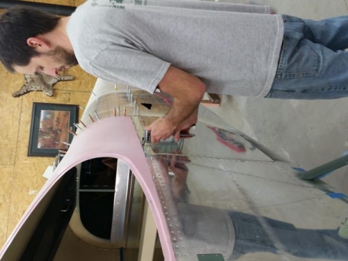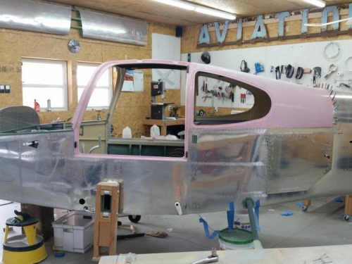 Now that my interior is painted, I can final install the cabin-top. I set it down on a bead of flocked cotton epoxy around the door area, and used tank sealant to fay seal the seam along the sides and back.