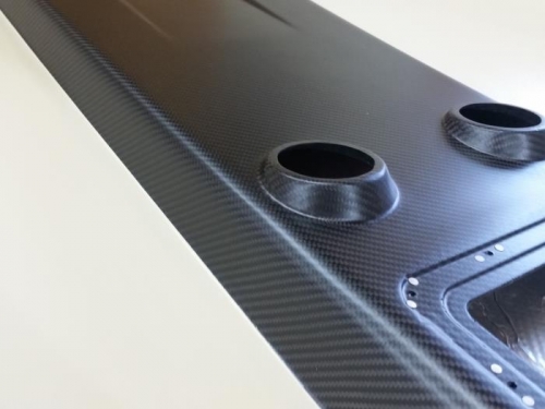 After many hours and coats of filler primer, sanding, painting, and clear coat my cabin top is looking pretty good. Not perfect, but pretty good. I don't mind being able to see some of the fiberglass mesh in some areas.
