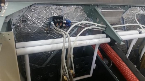 Installed stainless-ceramic fiber-aluminum insulation. I am temporarilly leaving the upper insulation off until my shunts are installed on the firewall.
