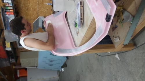 I covered the hinge area with some layers of fiberglass. After fairing it all out, I painted the doors.