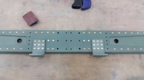 I determined that I was not comfortable with the H.S. that the previous builder had built. There were several blown out holes in critical parts such as the attach angles and the spar fishmouth doubler.