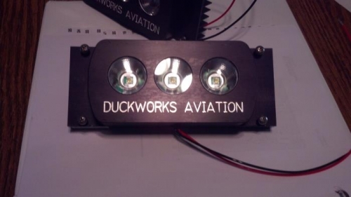 I love breaking away from the plans to include an aftermarket mod whenever I get a chance. This mod will be nice to have as the blueprint setup leaves pilots with low night visibility. I bought two Duckworks LED leading edge assemblies (1 for each wing). The pictures show the illumination of just one LED unit powered on. I'm sure I wont have any problem at all with two. Also the electronic circuit breaker box that I will use (Vertical Power) allows me to use my landing lights in a wig-wag configuration.