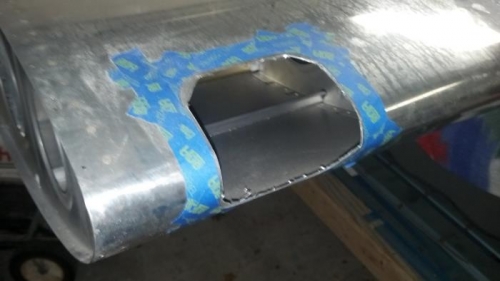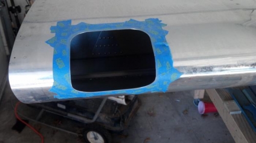 After the template outline was taped off, I used a cut-off wheel to remove the light hole. then a combination of dremel, filing, and scotchbrite to acheive a nice cut-out.