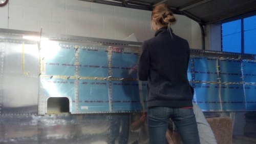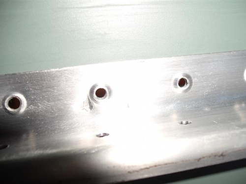 Tessa finally was available to help me for a few days to rivet the lower skins. They were a lot of work and overall everything went well. I did have two bad bar mark conditions. One was on the stringer, and the other was on an outboard rib flange. The pictures shown bellow show the bar mark, and the repair angle I nested over the discrepant location.