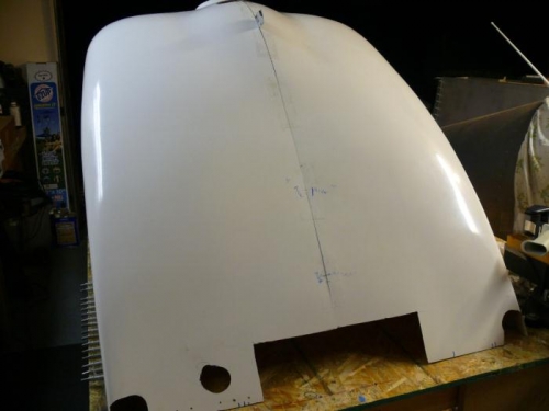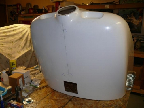Started out by taping the cowl halves into place on the fuselage, just for one final sanity check, and to make some alignment marks on the cowl halves.