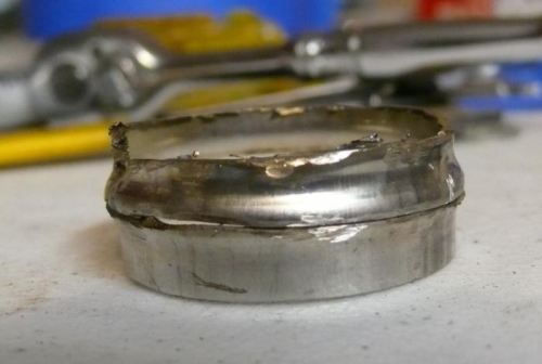 Trimmed about 5/16' more off the end of the intake. See results of two trim operations in the first pic below. This allowed the cowl to at least fit with the hinge pin inserted. However, the filter is still crammed right up onto the hinge pin; I know this won't pass inspection; cannot even get a piece of silicone in between to cushion it. Have written to Kerry to try and find out what else I can do.