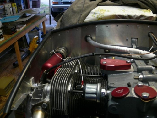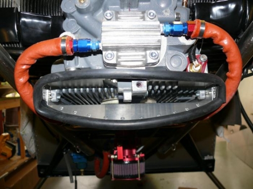 Started with the oil cooler inlet. I used a single piece, wrapped all the way around the opening. See pic 3 below which shows the start/end seam point. The second picture looks a bit lop-sided, but it's just due to the springiness of the upper baffle.