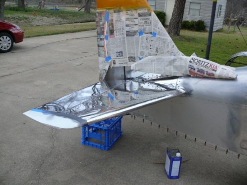Polished the right side of the horizontal stabilizer. Did 3 passes with the F9, and one of C on the top surface.