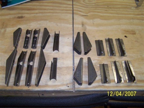 Not doing much work on the plane. Do many other things to do. Here are the flap and aileron support ends, flap arm, flap and aileron hinges. Drilled the #2 support ends getting ready to cut out the hole for the pushrod to go through.