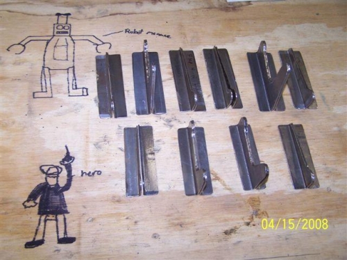 I can't believe I spent 8 hours... Bent the aileron and flap hinges that have the pushrod attach points, very carefully. Then began the process of marking the hinges. I can't believe how long this has taken. I marked all the hinges and carefully, very carefully. Started to drill one aileron hinge and noticed something wasn't quiet right with the way the drill bit was lining up with the hinge point. I had mismeasured but caught it before I ruined the hinge. Drilled a total of three sets of the aileron hinges. The careful measurement paid off. The geometry of the holes is perfect on all three. Can't believe it took 8 hours.