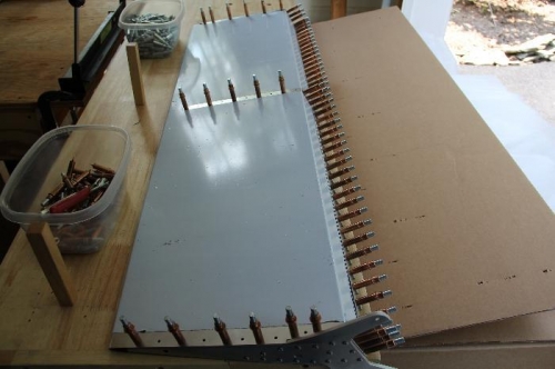 Updrilled to #30 the Rudder Skin, ribs, rudder drive horn rib and hinge.