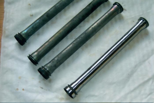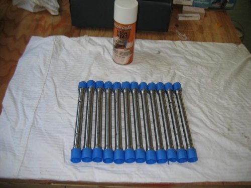 I started cleaning the pushrod tubes. I setup the grinder w/ the Scotch-brite wheel and polished up 6 tubes. They look great. Now I need to get a shotgun bore brush to clean the inside before I paint them.