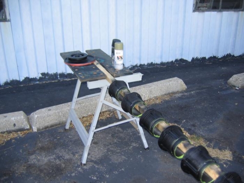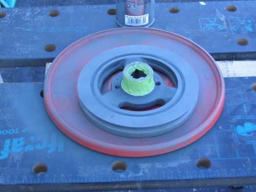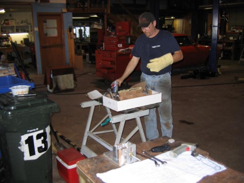 Today I cleaned and painted the cylinders and harmonic balancer while Mark Mic'd the crank and case. We suffered a delay when he discovered that the rod journals were .020 under instead of .010 like the Moldex tag stated. This caused us to call Clark's and overnite a set of 0.20 under rod bearings. We installed the cam and he shifted work back on to the heads.