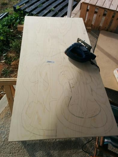 Trazado de la forma en laminado fenólico de abedul de 15mm y 11 capas.