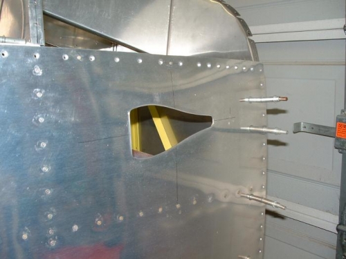 Today I cut the holes for the naca scoops and fabricated the aluminum retainers.