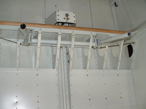 I havent posted any updates for a while but I have been working on the plane. I try to get in a few hours in the mornings on my days off before it gets too hot to think. I started temporary assembly of the flight controls. I eventually will assemble everything to the rear of the airplane and then mount the tail and connect the elevator and rudder controls.