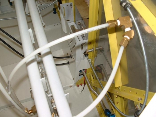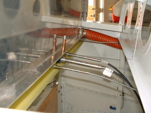 I spent a few hours this morning installing the control cables for the engine throttle, mixture, and carb heat. I cut and installed the scat tubing that runs from the naca scoops to the eyeball vents. All of this is temporary and will need to be pulled back out of the plane to allow for painting of the instrument and sub panels.