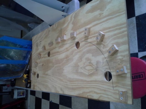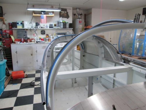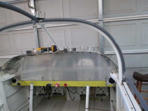 I clamped a piece of plywood to the roll bar and screwed pieces of wood to it around its perimeter to use as a guide for re-bending the forward bow of the canopy frame. I then cut the fwd bow from the frame and re-bent it to match the fixture made from the roll bar. I then set it in place against the roll bar to check the fit and it is much better! I will now make temporary aluminum splice plates to hold it together while it gets re-welded. I may actually be able to make some progress on finishing the canopy now. This has by far been the biggest pita of the whole project so far!!!