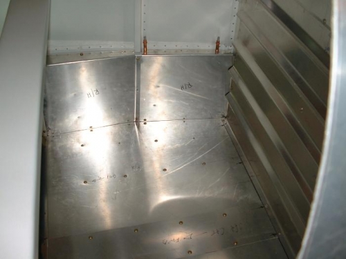 Haven't been able to get much done on the plane due to long work hours and an extremely HOT garage at 6pm every evening. Most of the work being completed during this miserable summer is being done on Saturday mornings. As soon as this heat breaks I plan to be out there a lot more. I spent the last two Saturdays installing nut plates in the floor structure. The plans call out for riveting the cabin and baggage panels in place but I prefer to have them removeable for inspection access. It's quite a bit more labor and will add a little weight but will be nice come inspection time.
