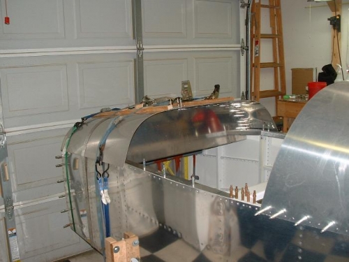 After getting the instrument panel located I moved on to fitting and drilling the skin. I layed out the rivet pattern on the underlying structure so I can back drilll everything once the skin is where it needs to be. I drilled about 6 holes down the center and called it a day (night).