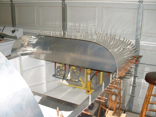Tonight I picked up where I left off on the fwd/upper skin. I was able to get all of the holes drilled and notched the hole where the roll bar brace attaches.