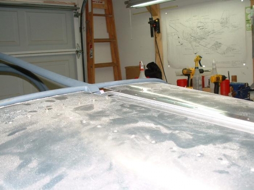 Today after getting home from work at 7:30am I was feeling motivated so I dug around and found the hardware for the canopy. I cut the canopy slide rails and clamped them in place, temporarilly installed the canopy slide wheels, did a second trim on the aft fuselage skin and fabed up the aft slide rail. There is going to need to be some tweeking done to the canopy frame before I can start locating the slide rails permanantly.