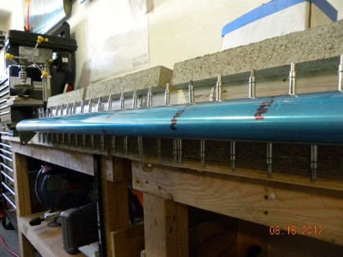 The leading edge skins were difficult for one person to fold around the leading edge and cleco in place; but i managed, and didn't have a need to fabricate any fancy strapping or clamping tools as i've read of others doing.