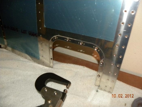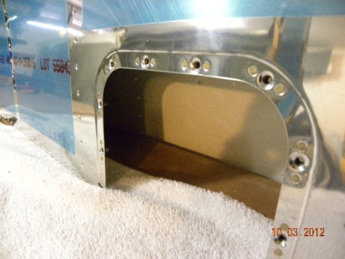 The bottom of each wing has three access holes with removable cover plates. The cover plates are held in place with countersunk screws. I drilled, deburred and dimpled all the rivet and screw holes and then riveted the nut plates to the bottom wing skins.