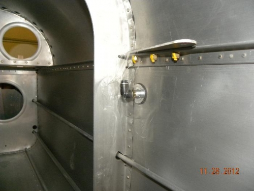 I installed the 90 degree fitting and tightened it down to the ports before fastening in place. I used pro-seal to adhere the port flanges to the inside of the fuselage skin.