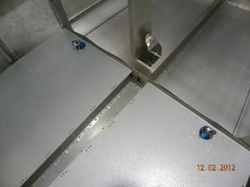 I purchased four removable tie-down rings from pitposse - same as vans sells but considerably less expensive. These are anodized aluminum and rated for 4000lbs. I selected an area of the baggage floor that seemed to be the most sturdy. I fabricated and installed some doubler plates to the baggage floor bottoms then drilled the fastener holes for the tie downs. These are located between two floor ribs, which i think is better than putting them right next to the side panel, because then any uplift would be transfered into that side panel in lieu of the floor ribs; because there is no rib where the floor is fastened to the side panel.