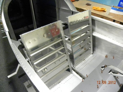 But, before all this I did manage to paint a few pieces of the seat backs and debur all the parts. Once i got home i finished riveting the seat backs together and forming the hinge pins.