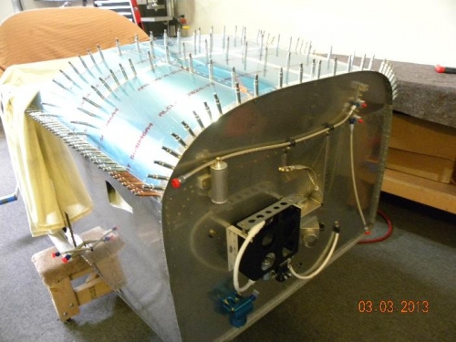 I deburred and dimpled the forward top skin, which is the last major skin in the entire project that needs to be dimpled and deburred. Afterwards I clecod it in place on the fuselage.