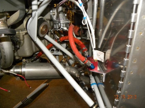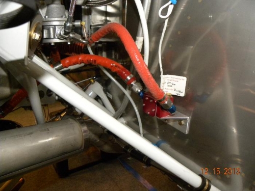 The Garmin G3X comes equipped with a fuel flow transducer, capable of indicating fuel used, fuel left, projected range, fuel range rings on the moving map, the whole nine yards. This is done by plumbing a fuel flow transducer (aka red cube, in the industry) in line between the mechanical fuel pump and carburator. It is wired to the G3X system. This will need to be calibrated prior to first flight.