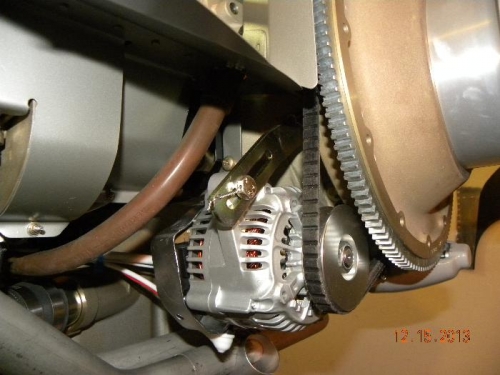 The flywheel has been off for quite some time while working on baffles and other firewall forward wiring. I reinstalled it and reset the alternator belt tension and fastened the alternator in place. I also safety wired the alternator tension bolt in place. The alternator has about three different locations requireing safety wire... the previous two are only accessible with the flywheel off.