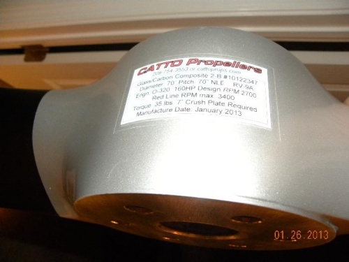 After about a 3 month lead time, which was expected, my prop arrived from Catto Propellers. I this is a wood and glass composite two blade propeller with nickel plated leading edges. The nickel leading edge help protect from FOD and rain droplets.