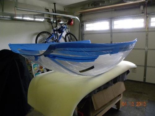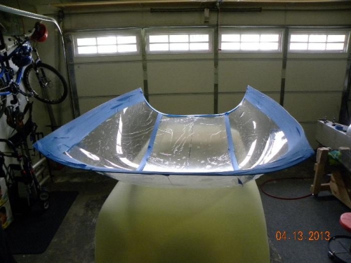 First i located the centerline of the canopy, marked it, then trimmed the mold flanges from the perimter of the single piece plexiglass canopy and smoothed the edges