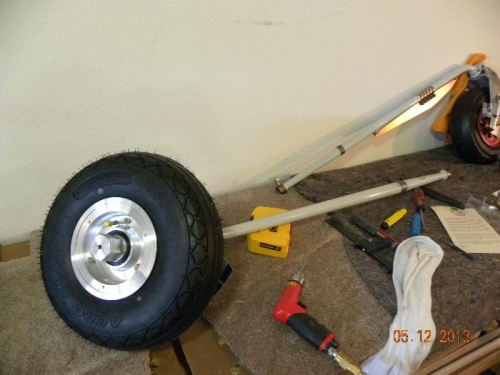 Installed the main wheels and matco brake assemblies on the main gear legs. First i packed the wheel bearings with some aeroshell 5. The wheel nut here is supposed to tighten in order to hold the wheel bearings from spinning with the wheel, but you dont want too much friction, or i guess the gear legs would wobble like heck. This is a bit of a crap shoot here, i also imagine things get settled in a bit after the first few landings. Drilling the hole for the cotter pin throught the threaded body of the main gear was difficult.
