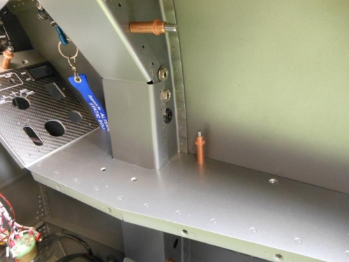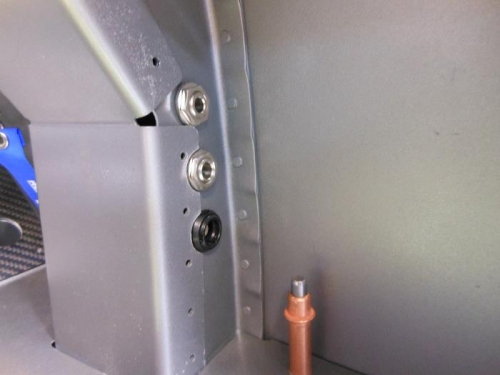 Located and drilled the holes for the front seat com jacks in the right center section aft bulkhead. Ran the com wires and soldered the ends to the com jack recepticles. There are three plugs because the lower one is to power the headset from ships power so no more batteries.
