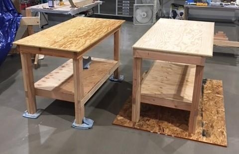 Built 2 EAA Workbenches. Modified to 60" x 30" tops with a 2 inch lip around the the front and left side of one and the front and right side of the other. The thought was to have a lip to clamp things down with but I can also butt the 2 tables end to end or back to back for larger work surfaces. Also put retractable wheels on both tables for ease of moving them around.