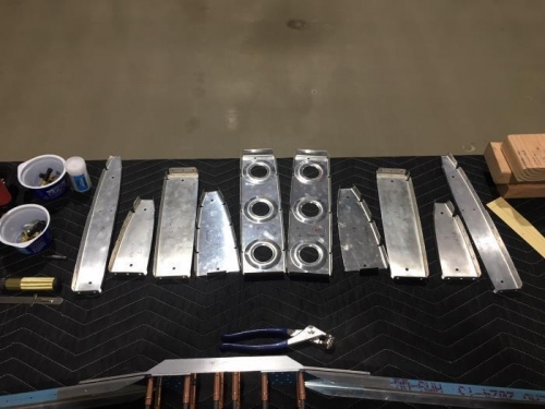 Prepped all H.S. Ribs. Found this to be very time consuming but also know that taking the time to do this correctly yields good results. I find myself wondering if I'm not being a little to "OCD" on this work. Being the first ribs prepped I did improve my technique the more I did. I found 3-4 pulls with a double edge deburring blade, a little work with a small round file for the releif grooves and patience on the scotchbrite wheel worked pretty good. Took my time and faceted all edges that will have skin contact. Now ready to make these parts look like an actual aircraft part.