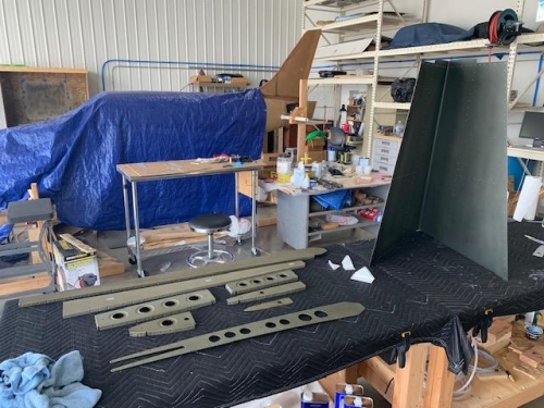 Primed all parts and skin for the vertical stab to include the doubler I built for VS-706 top rib.