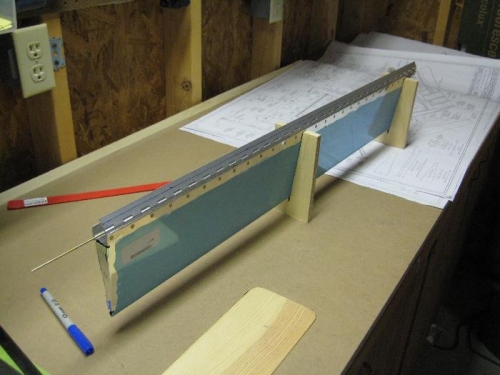 Finished the trim tab. Looks simple but I can't believe how much care goes into building this thing. It's sitting in the clamps which are holding the cemented ribs in place.
