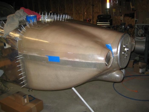 Marnie helped me bolt the cabin heat box onto the firewall. I climbed inside and under the panel while she held the wrench on the forward side of the firewall. Bolted the new starter into position and worked some more on the fit of the cowl.